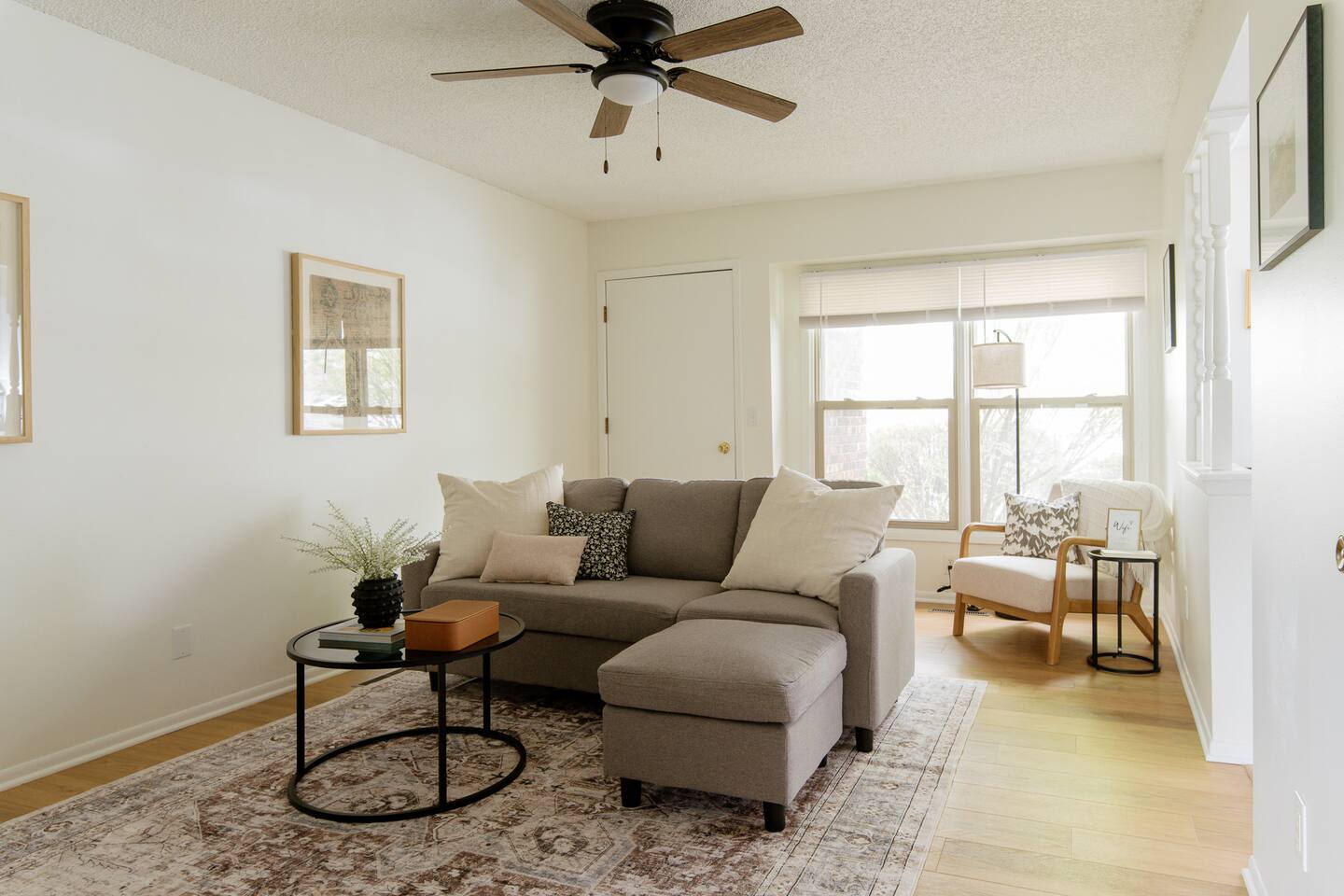 This home is located in a family friendly neighborhood in Altoona! The home was recently remodeled and has a modern and fresh feel! This 2-bedroom, 1-bath duplex will sleep 5-6 people but we recommend keeping it to 4 people or less for maximum comfortability! Main Floor: - Fully equipped kitchen with an Air fryer and a Blender! - Spacious living room with smart TV, board games, and a comfy sectional sofa - Master bedroom with Queen Bed and a full size mirror - Secondary bedroom with Queen bed - Primary bathroom with tub/shower stocked with toiletries. This includes Shampoo, Conditioner, and body wash for sensitive skin. Basement (unfinished): - laundry room with free washer and dryer use Outdoors: - Relatively large Backyard - Great for kids and dogs - FULLY FENCED IN! - Lockable shed that's great for bikes, outdoor games, etc. The home is equipped with fiber allowing for reliable, high speed internet. You can feel confident with your wifi connection for remote work!