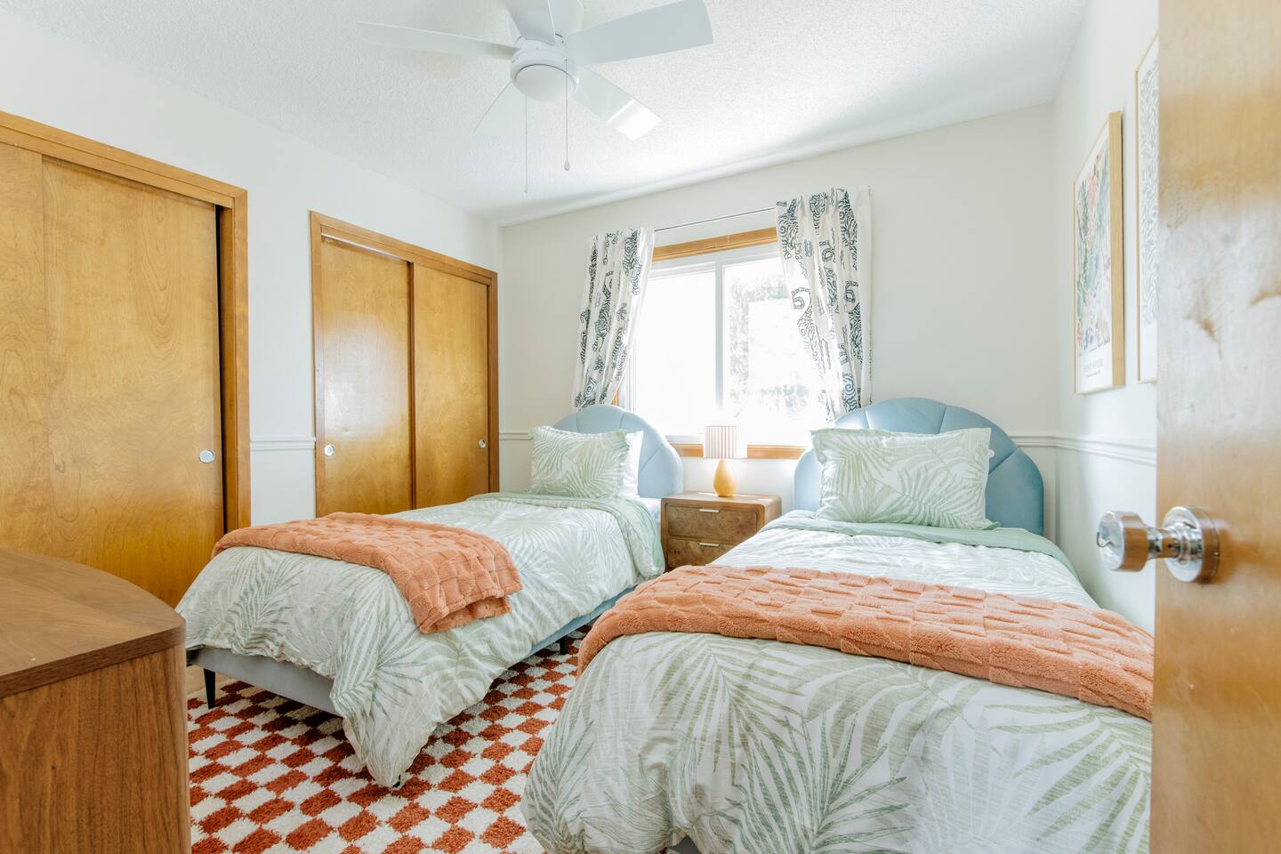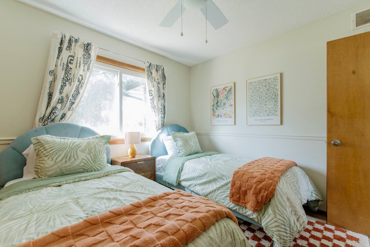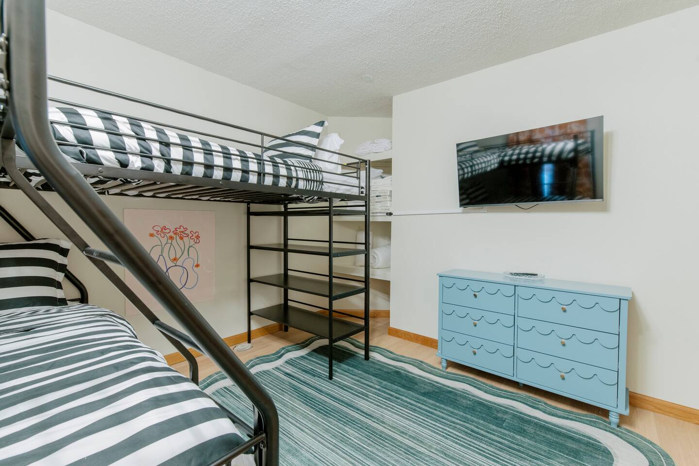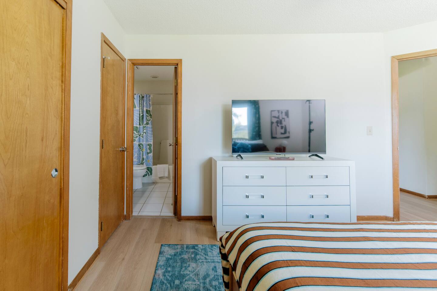 This spacious home features a modern eclectic design with all the modern updates and entertainment you need for an unforgettable stay. Spread out across six comfortable bedrooms, enjoy movie nights, golf tournaments, and evenings in the hot tub—all without leaving the house. 🛏 Sleeping Arrangements (Sleeps 14) 6 private bedrooms, each with its own TV Plenty of bed space for families, groups, or coworkers 🍽 Full Kitchen Fully stocked with dishes, cookware, and appliances—perfect for preparing meals for the whole group. 🎯 Entertainment Amenities Golf Simulator: Play almost any course in the world! Bring your own clubs or use our driver-friendly set. Private Sauna: Seats 4–5 people for the ultimate relaxation. Hot Tub: Fits 6–7 guests and is surrounded by a privacy fence for your comfort. Arcade Games: Retro games that are fun for all ages! 🛁 Bathrooms 3 full bathrooms with towels, shampoo, body wash, and hair dryers provided. 🖥 Other Features Smart TVs in every bedroom High-speed Wi-Fi Washer & Dryer Central heating and cooling Free parking on-site Self check-in