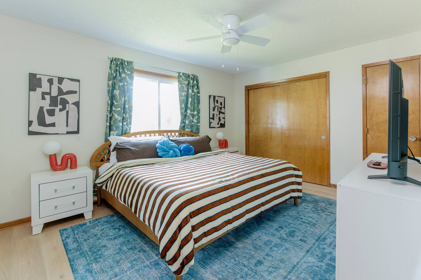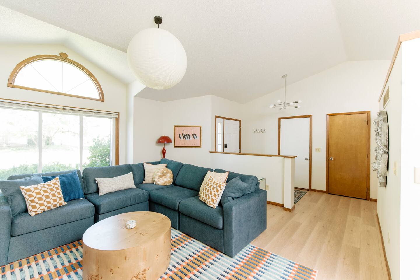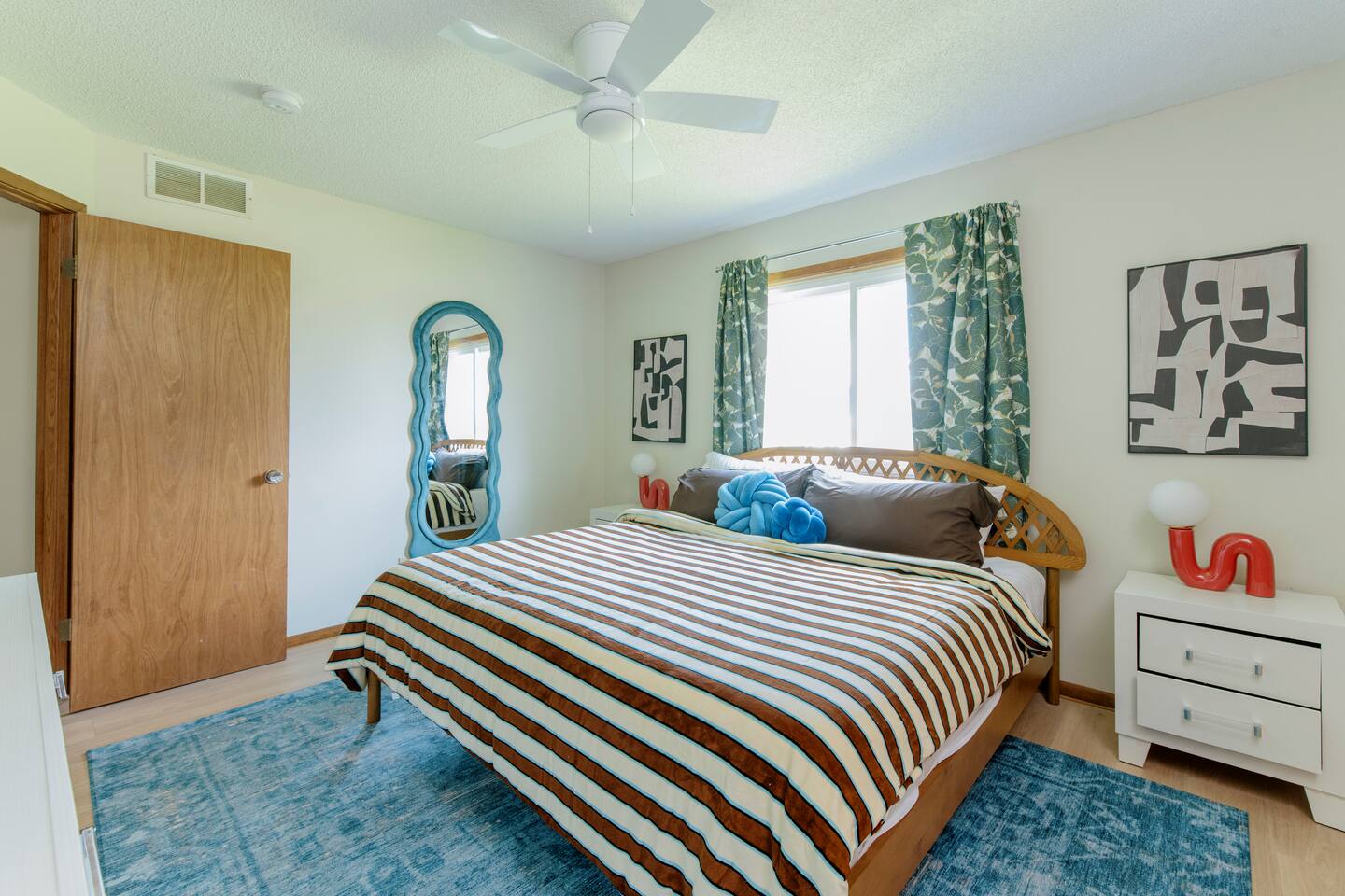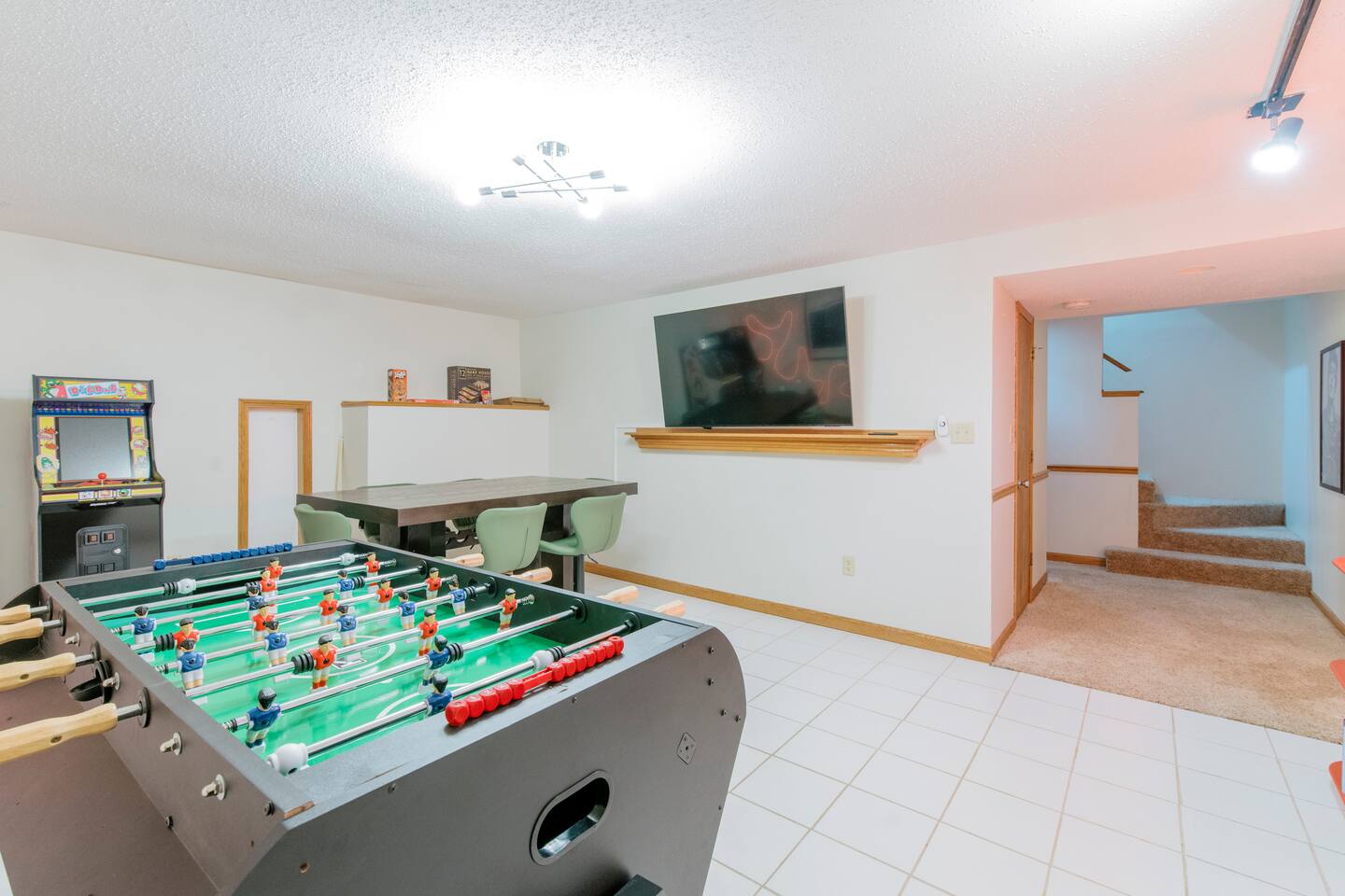 Relax and unwind in this fun, retro-inspired 6-bedroom, 3-bathroom home in Ankeny, Iowa—perfect for large groups, family gatherings, or business retreats. Conveniently located near I-35 and just minutes from Target, Walmart, Buffalo Wild Wings, Panda Express, Chipotle, and more! With space for up to 14 guests and unforgettable amenities like a golf simulator, sauna, game room/arcade, and private hot tub, this home is designed for comfort, convenience, and connection.