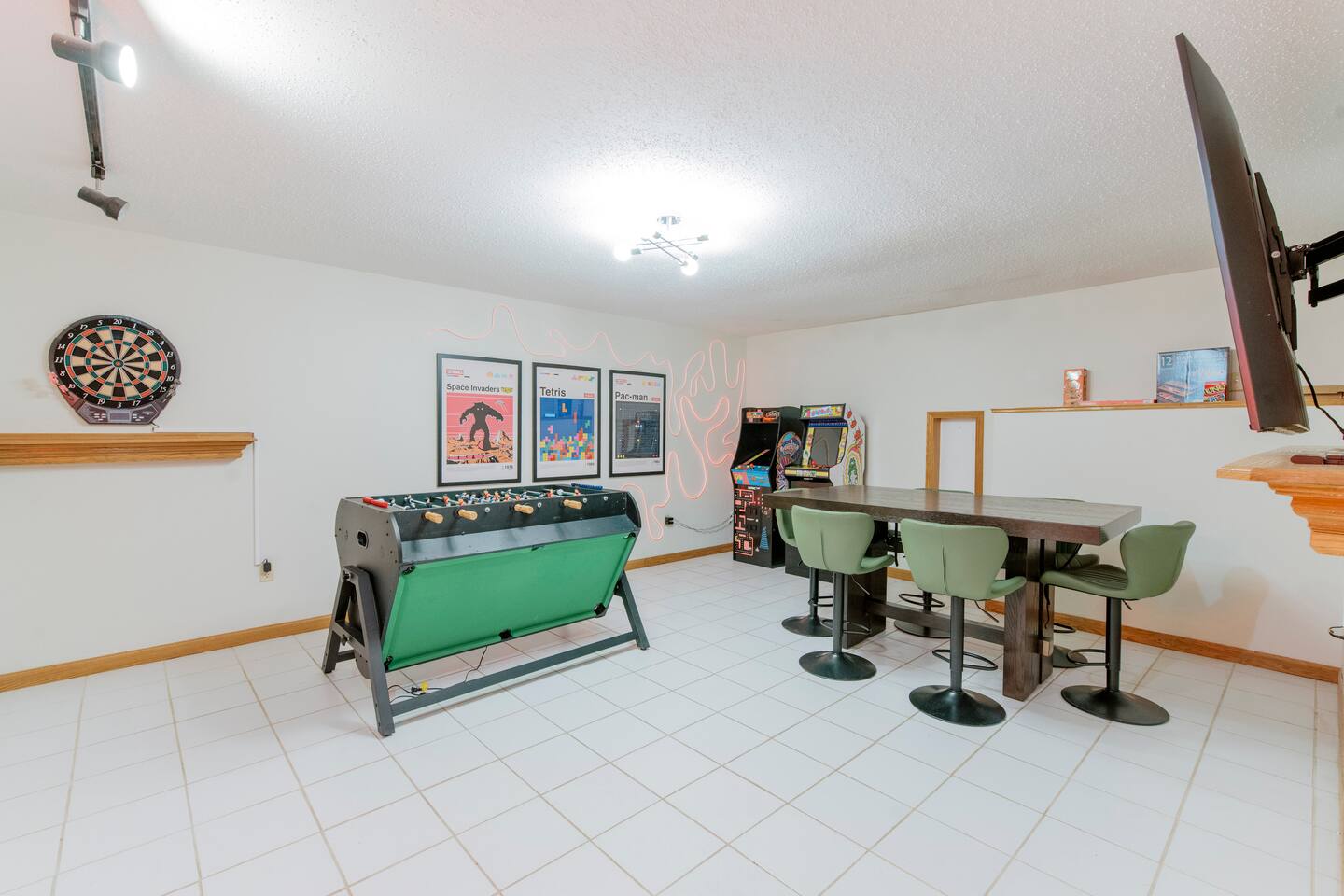 Guests have full access to the entire home and all amenities, including: Hot tub (private, with fenced-in area) Sauna Golf simulator Game Room/Arcade Backyard and outdoor seating areas Laundry area